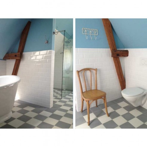 UWAGA - płytki cementowe są formowane ręcznie i nigdy nie należy porównywać ich z płytkami wykonywanymi maszynowo. Reklamacji w żadnym przypadku nie podlegają cechy wynikające bezpośrednio z charakteru produkcji, w szczególności są to: niewielkie uszkodzenia narożników i krawędzi, niewielkie różnice wymiarowe, nieznaczne nierówności i niedokładności wzorów, niejednolitość barwy na płytce, różnice kolorystyczne pomiędzy poszczególnymi płytkami z danej partii - zawsze należy mieszać płytki podczas układania. Po instalacji na powierzchni płytek czasem mogą pojawić się mikro pęknięcia (tzw. harris) - jest on praktycznie niewidoczny i nie wpływa na właściwości użytkowe powierzchni, niezależnie od miejsca zastosowania (np. w brodziku).