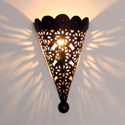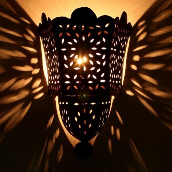Lampy w stylu orientalnym, inspirowane kulturą Maroka, Mauretanii i krajów arabskich wniosą powiew egzotyki do każdego wnętrza. Występują w tysiącu i jeden modeli i kolorów, a każda z nich jest niepowtarzalna. Świetnie nadają się do mieszkań, kameralnych restauracji czy klubów, sprawdza się również jako niebanalny prezent. Wykonane są ręcznie według klasycznych regionalnych wzorów ze sztancowanych metali - patynowanej blachy, mosiądzu oraz „rdzawego” żelaza. Nastrojowe światło zawdzięczają wstawkom z różnokolorowego szkła i perforacjom. Poprzez wykorzystanie różnych rodzaju szkła: witrażowego, reliefowego, ornamentowanego lub mlecznego, światło każdej z lamp kreuje inny nastrój: od radosnego po bardziej mroczny i tajemniczy. Lampy z Maroka można montować u sufitu lub na ścianie za pomocą haków. Przeznaczone są zasadniczo do oświetlenia elektrycznego, ale niektóre z modeli mogą służyć również jako oprawa świecy. Ich wysokość wynosi między 37 a 55 cm. Marokańskie lampy wiszące nie pochodzą z masowej produkcji, są wykonywane ręcznie i powinny być traktowane jako unikatowe wyroby rzemiosła artystycznego. Wyposażenie elektryczne oraz łańcuch nie są wliczone w cenę i nie dołączamy ich do przesyłki.