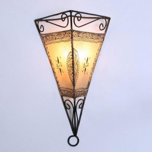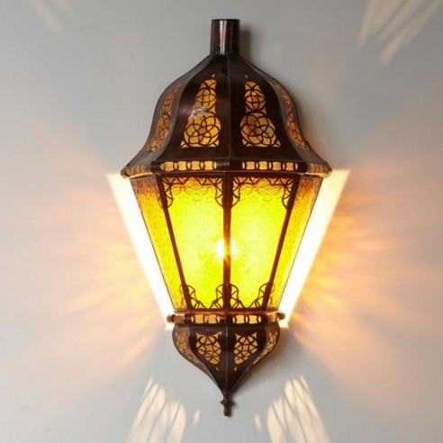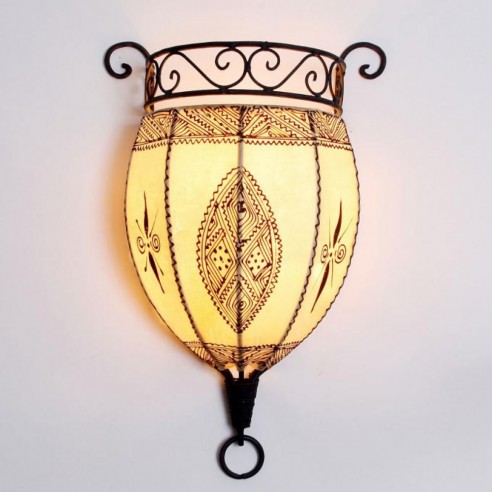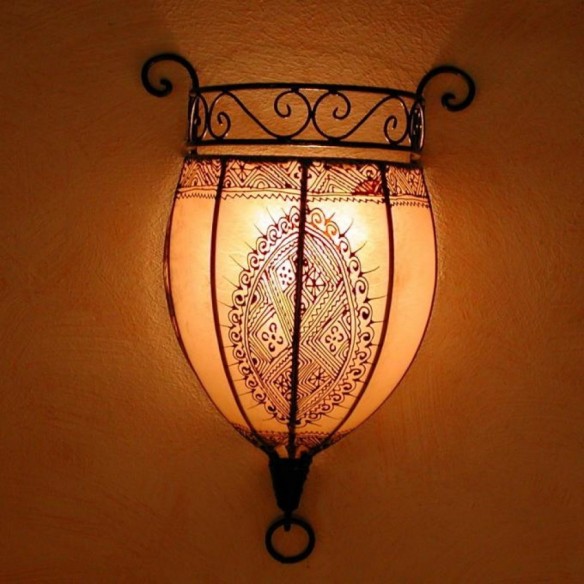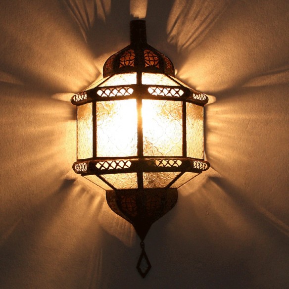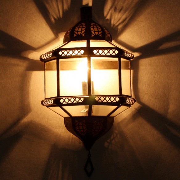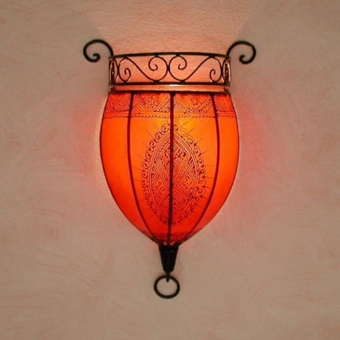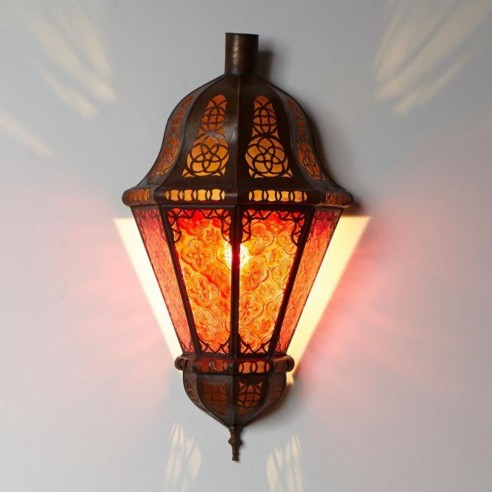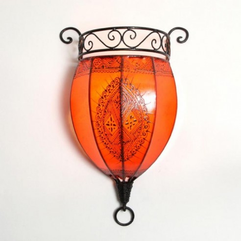 Lampy w stylu orientalnym, inspirowane kulturą Maroka, Mauretanii i krajów arabskich wniosą powiew egzotyki do każdego wnętrza. Występują w tysiącu i jeden modeli i kolorów, a każda z nich jest niepowtarzalna. Świetnie nadają się do mieszkań, kameralnych restauracji czy klubów, sprawdza się również jako niebanalny prezent. Wykonane są ręcznie według klasycznych regionalnych wzorów ze sztancowanych metali - patynowanej blachy, mosiądzu oraz „rdzawego” żelaza. Nastrojowe światło zawdzięczają wstawkom z różnokolorowego szkła i perforacjom. Poprzez wykorzystanie różnych rodzaju szkła:  witrażowego, reliefowego, ornamentowanego lub mlecznego, światło każdej z lamp kreuje inny nastrój: od radosnego po bardziej mroczny i tajemniczy. Lampy z Maroka można montować u sufitu lub na ścianie za pomocą haków. Przeznaczone są zasadniczo do oświetlenia elektrycznego, ale niektóre z modeli mogą służyć również jako oprawa świecy. Ich wysokość wynosi między 37 a 55 cm. Marokańskie lampy wiszące nie pochodzą z masowej produkcji, są wykonywane ręcznie i powinny być traktowane jako unikatowe wyroby rzemiosła artystycznego. Wyposażenie elektryczne oraz łańcuch nie są wliczone w cenę i nie dołączamy ich do przesyłki.
