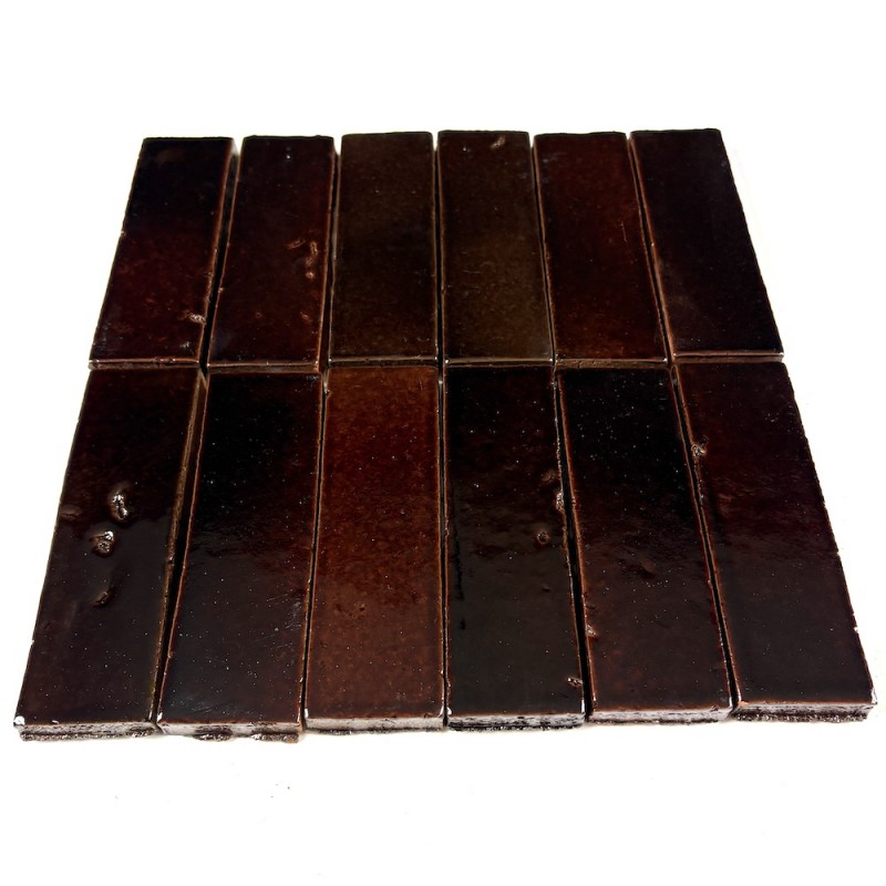 Płytki Azulejo Bottle Brown to wytwarzane ręcznie płytki ceramiczne o wymiarach ok. 5x15 cm i grubości ok. 1,5 cm. Dzięki tradycyjnej metodzie produkcji kolor płytek nie jest jednolity. Cała powierzchna jest kolorystycznie zróżnicowana, co daje bardzo żywy i piękny efekt. Płytki Azulejo można układać zarówno na podłodze (w pomieszczeniach o małym natężeniu ruchu), jak i na ścianach. Stosuje się je na także blatach stołowych. Idealnie nadają się do kuchni, toalety, przedpokoju lub łazienki. Można układać je na wiele różnych sposobów, np.: jodełka, blok 3x3 lub przesunięcie w poziomie o 1/2 płytki...