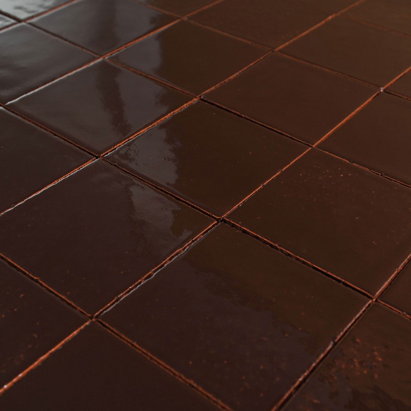 Płytki w kolorze tzw. błyszczącego ciemnego brązu czekoladowego. Zdjęcia nie są w stanie oddać pełnej urody płytek!