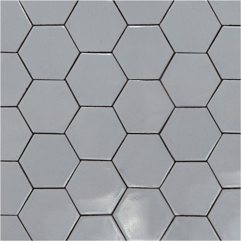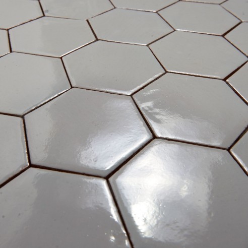 Kolor płytki to neutralna dość ciemna szarość. Format: sześciokąt ok. 100x115x5 mm, długość boku ok. 55 mm. 1 m2 to ok. 100 - 108 szt. płytek. Format płytek sześciokątnych może różnić się z powodu ręcznej technologii wykonania. Płytki są glazurowane ręcznie, nierówności i "niedoskonałości" powierzchni stanowią o ich urodzie. Płytki stosowane są przeważnie w kuchniach i łazienkach (w tym jako ściany kabin prysznicowych). Płytki te są niezastąpione w kuchniach rustykalnych, ale można je również stosować w nowoczesnych projektach. Naszym zdaniem świetnie sprawdzą się również w łazience.