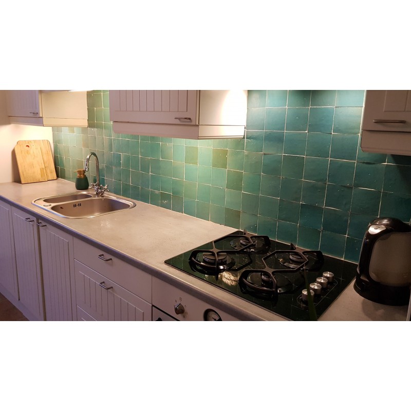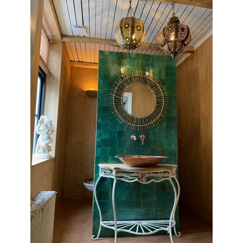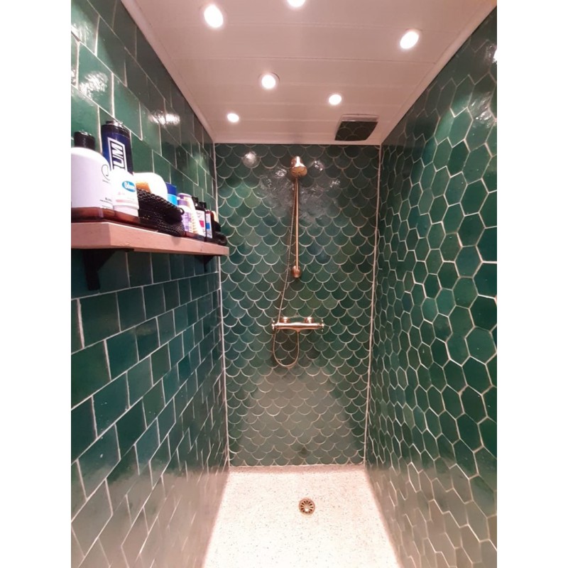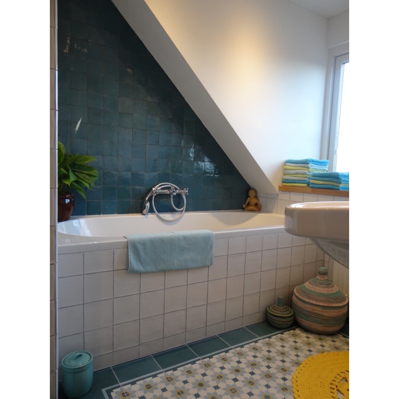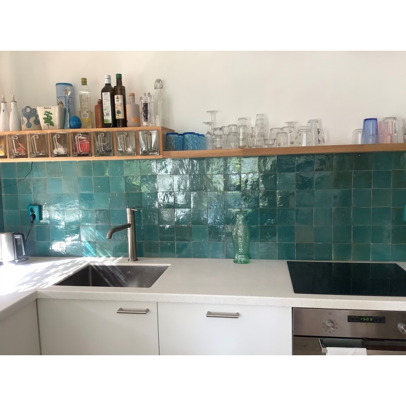 Zielone płytki Zellige Atlas Petrol to tradycyjna marokańska formowana ręcznie płytka ścienna o wymiarach ok. 10x10 cm lub 5x5 cm i grubości ok. 1 cm, pochodząca z fabryki w Fezie w Maroku. Dzięki specyficznej metodzie produkcji płytki są niejednorodne w kolorze i mają bardzo żywą strukturę powierzchni. Chociaż płytka wygląda rustykalnie, doskonale pasuje również do nowoczesnego wnętrza...