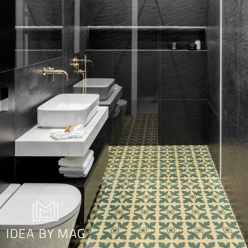 Płytki cementowe idealne w małej łazience. Dziękujemy za zdjęcie. Pozdrawiamy Idea by Mag!