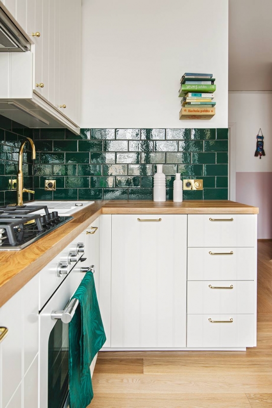 Płytki METRO w kuchni - zieleń turkusowa