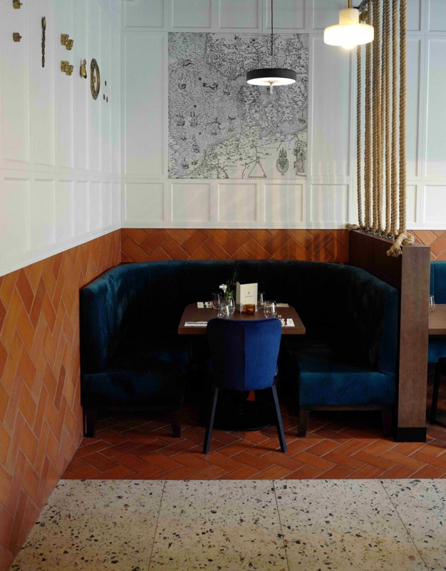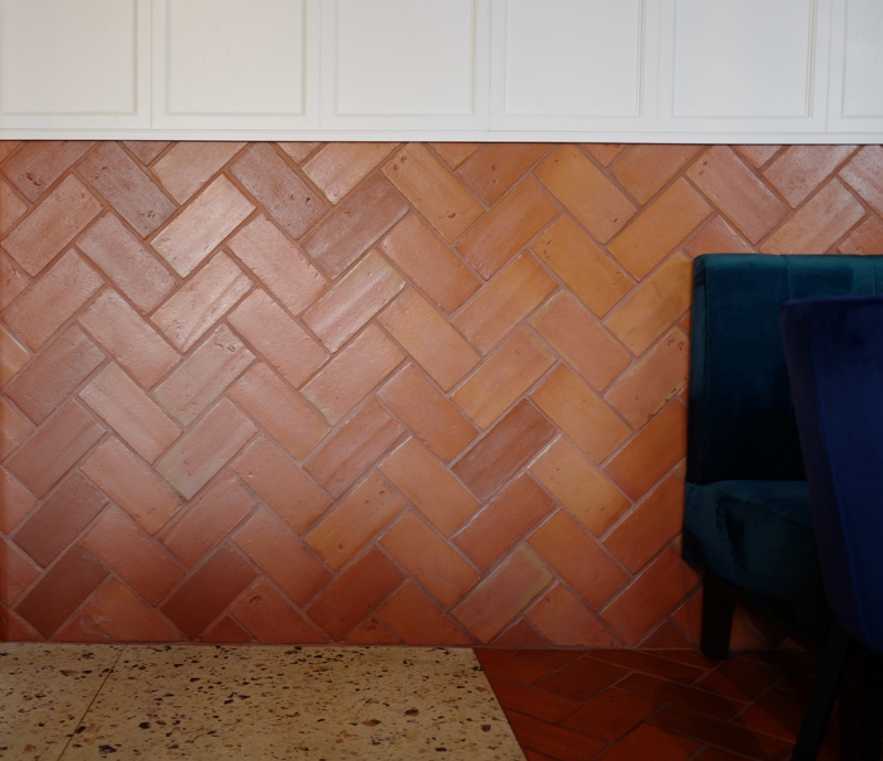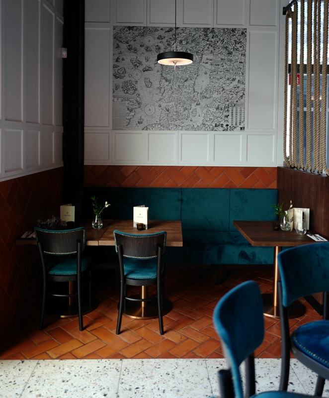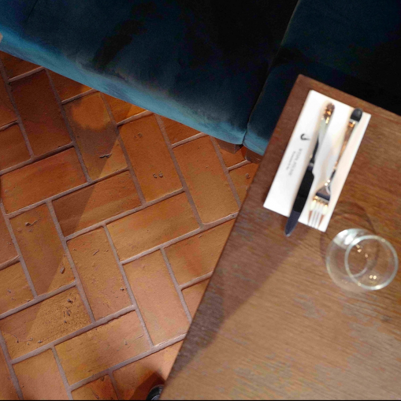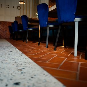 W gdańskiej restauracji Wyspa Północ wykorzystano naszą Terakotę Gotycką 25x12, co ciekawe ułożono ją nie tylko na podłodze, ale i na fragmentach ścian. Gratulujemy pomysłu i świetnego efektu!