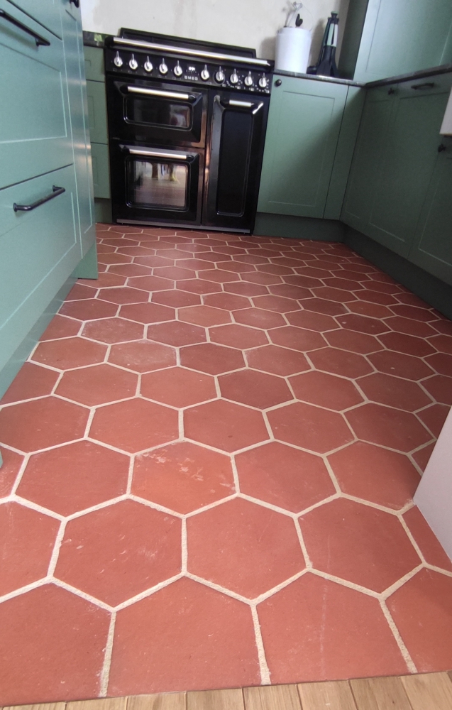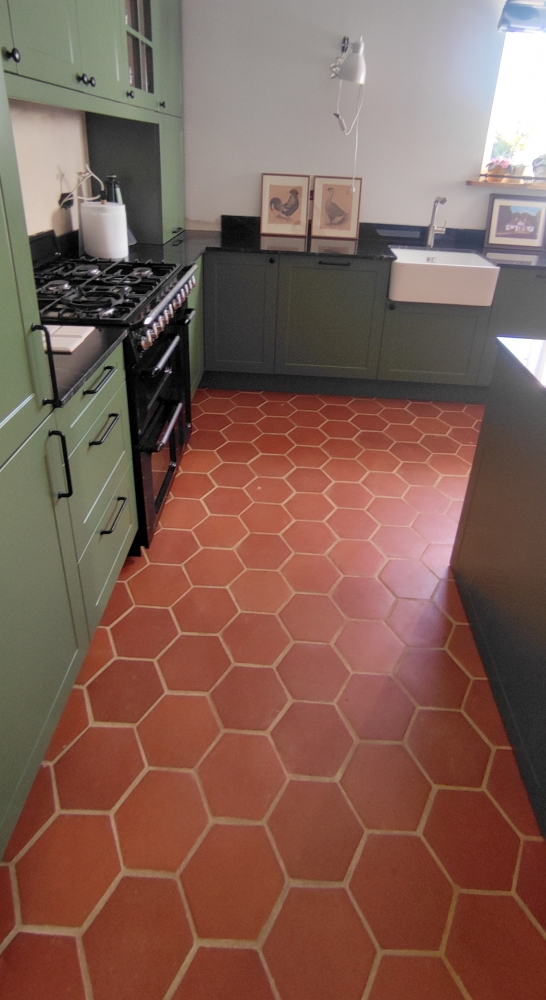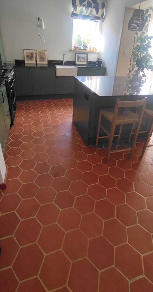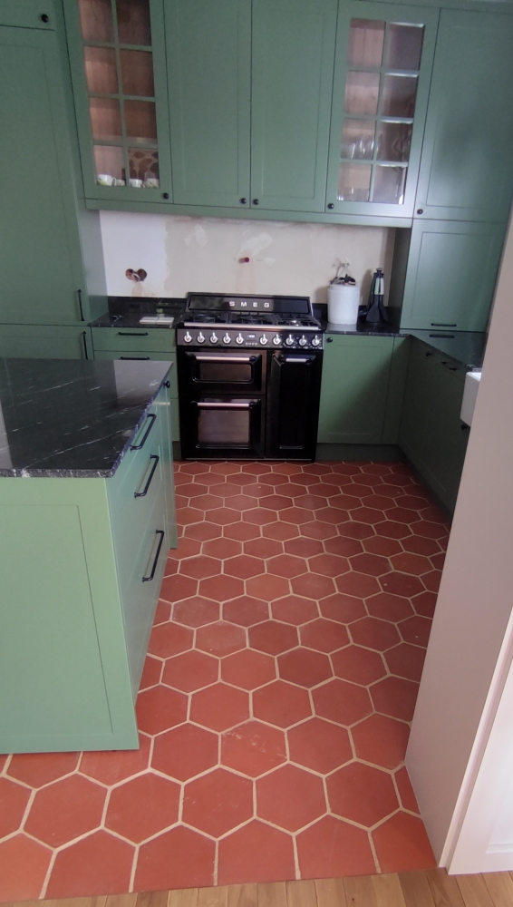 Terakota COTTO sześciokątna w otwartej kuchni
