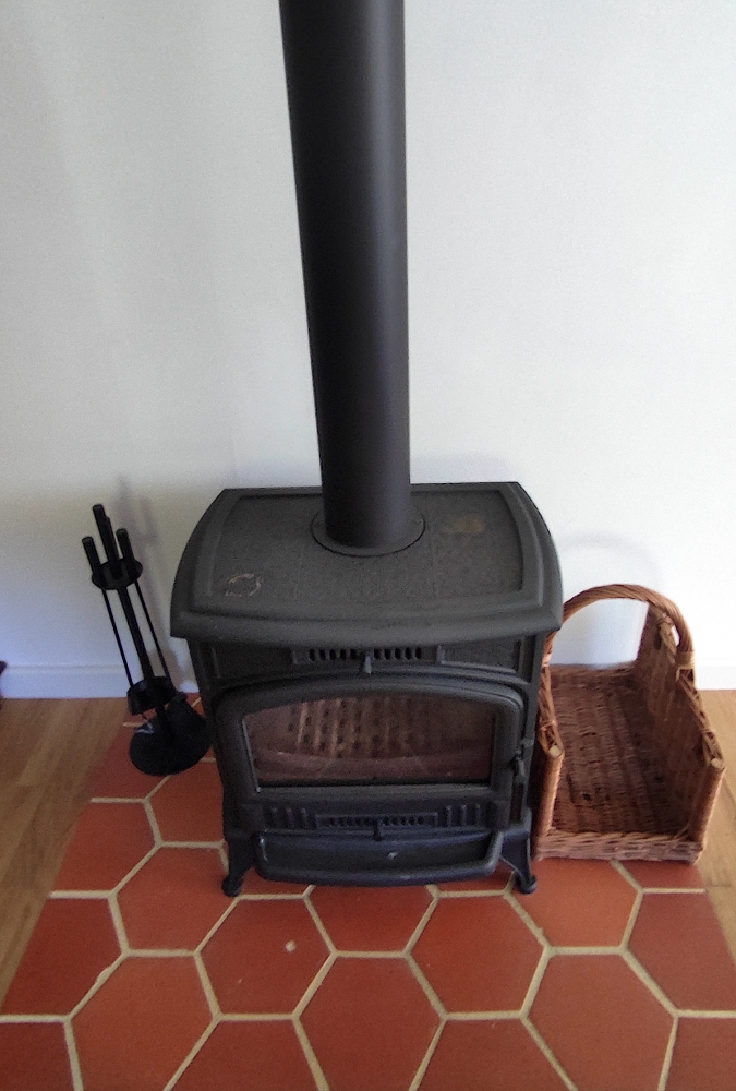Wyprodukowana w naszej pracowni Sześciokątna Terakota Cotto posłużyła do wykończenia podłogi w otwartej kuchni. Dodatkowo płytki sześciokątne zostały ułożone w miejscach bardziej narażonych na zabrudzenia: pod kominkiem typu koza oraz przy drzwiach prowadzących na taras. Zastosowano wykończenie w wersji pełnego matu. Zwracamy też uwagę na idealne połączenie płytki z deską podłogową.