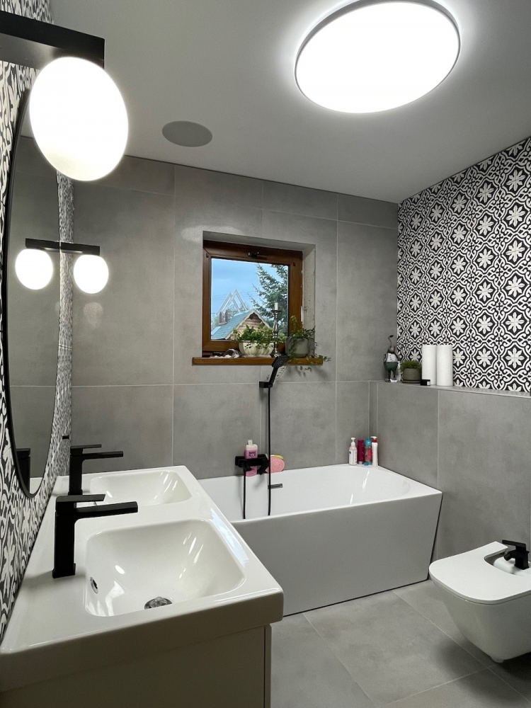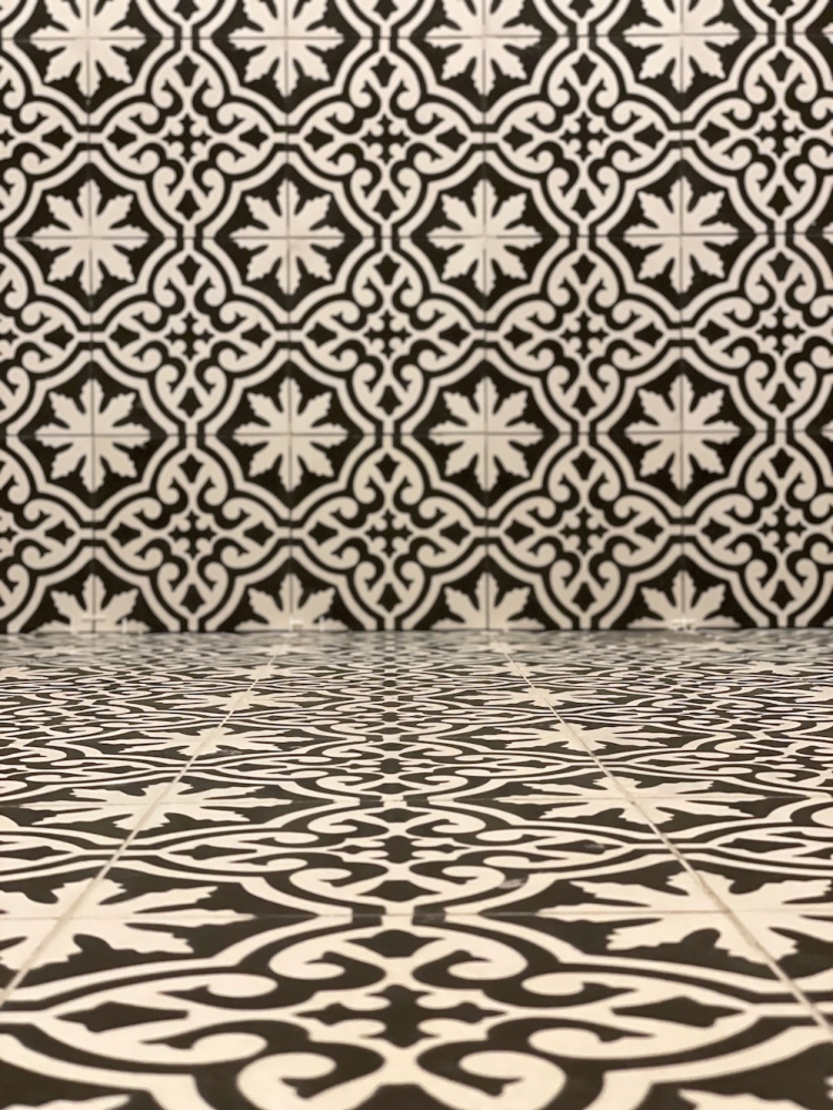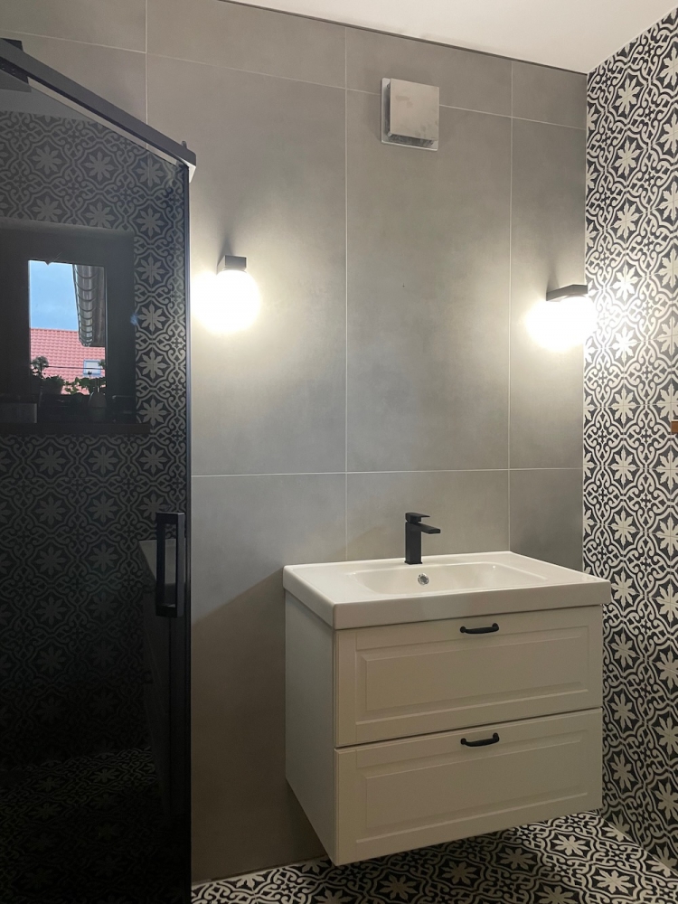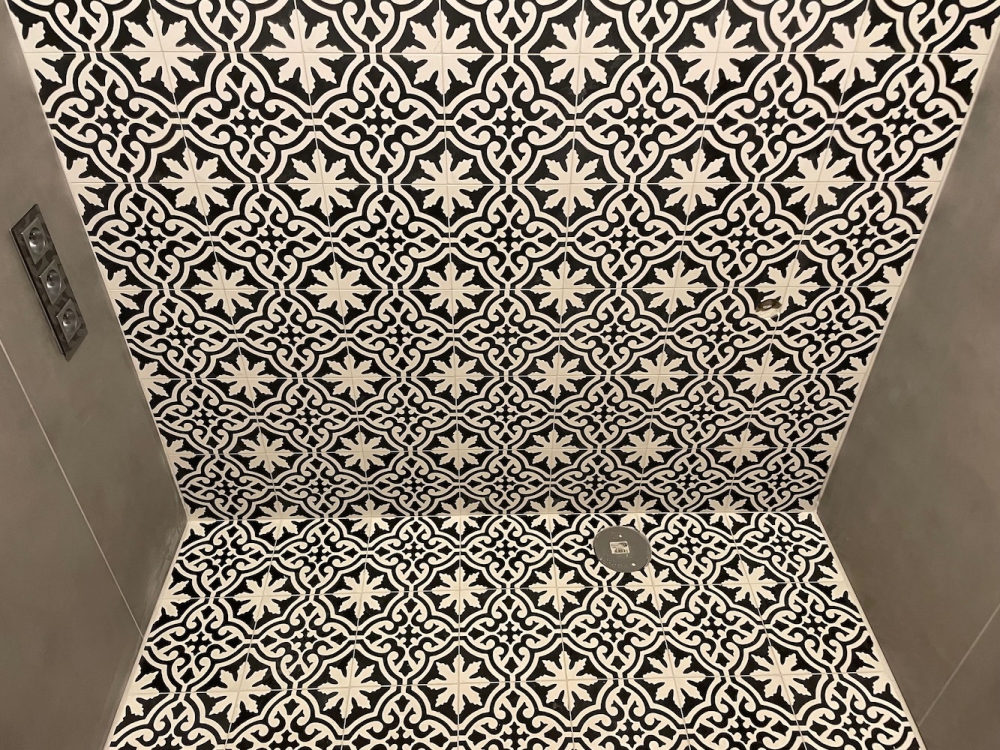 Płytka cementowa w klasycznym, marokańskim wzorze (Articima 454) użyta w nowoczesnej łazience. Ciekawy efekt przejścia podłogi w ścianę oraz minimalistyczny design. Serdecznie dziękujemy naszemu Klientowi za podzielenie się zdjęciami.