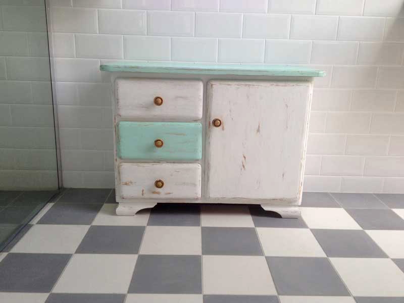 Kafle cementowe ARTICIMA ułożone w łazience. Wykorzystano płytki jednobarwne szare M03 i białe M01.