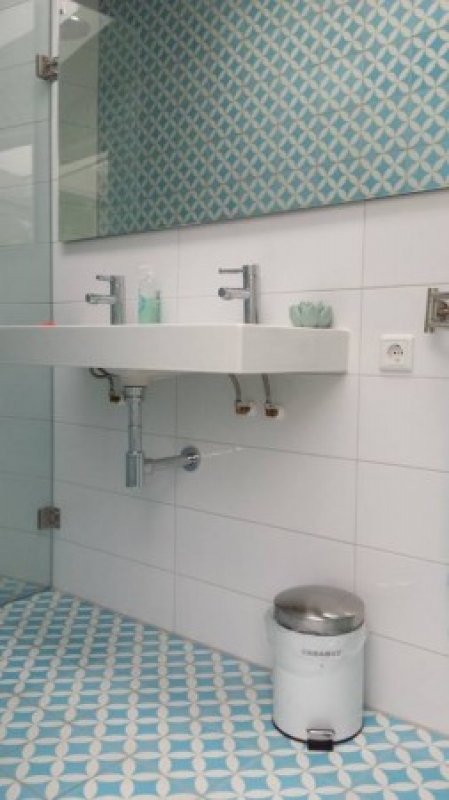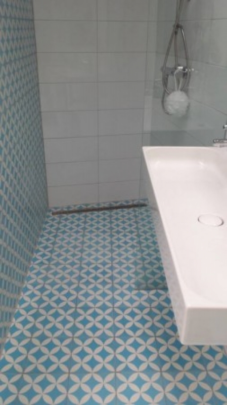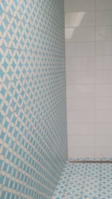 Płytki cementowe Articima nr 212 wykonane w indywidualnej, biało-błękitnej wersji kolorystycznej. W Articima możesz zamawiać swoje indywidualne kolory płytek - zapraszamy do skorzystania z symulatora płytek cementowych!