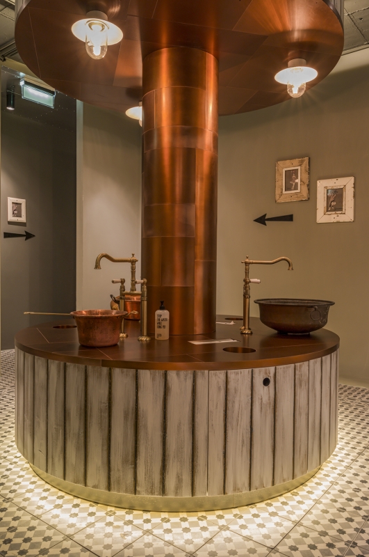 Kafle cementowe 301 w restauracji, a konkretnie w toalecie. Projekt od: DREIMETA