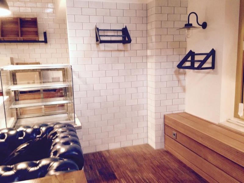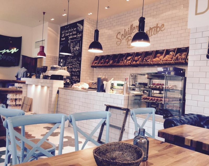 Płytki rustykalne METRO w formacie 10x20 cm, ręcznie glazurowane na biało ułożone w piekarni / cukierni SCHILLERBACKSTUBE w Berlinie. Płytki idealne dopasowane do charakteru i stylu pomieszczenia! Zapraszamy do artykułu na temat tej realizacji do naszego bloga!