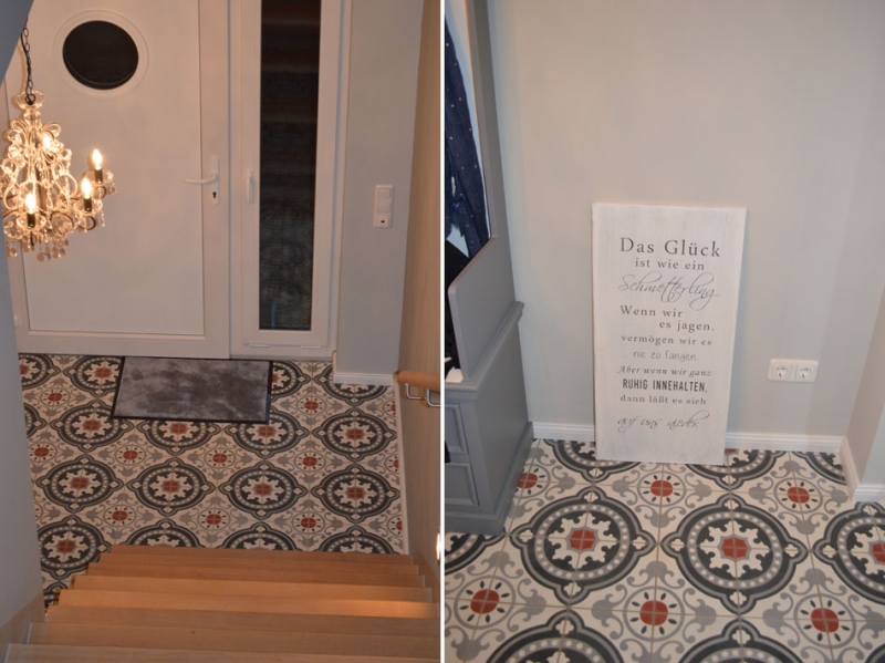 Płytki cementowe 501 na korytarzu - kolory na indywidualne zamówienie