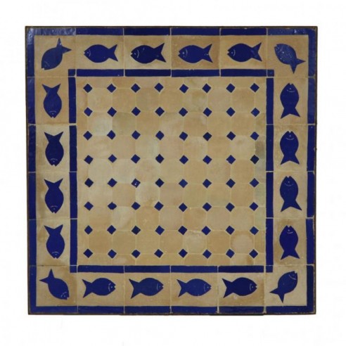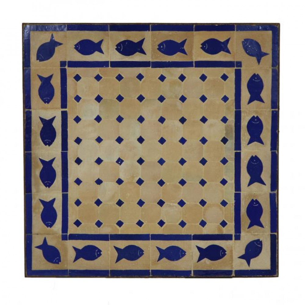 Kwadratowy stolik mozaikowy 60x60 niebieska ryba