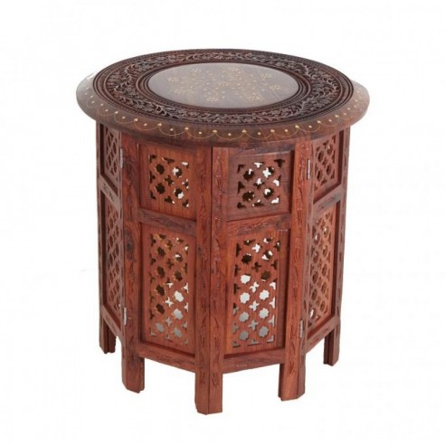 Proponowane przez nas stoliczki idealnie wpisują się w klimat wnętrz w stylu orientalnym, które słyną z kameralnego, przytulnego charakteru i bogatej ornamentyki. Mogą także stanowić egzotyczny akcent w nowocześnie zaaranżowanym pomieszczeniu. Wykonane są z indyjskiego drzewa sheshaam (sezam), bogato zdobionego intarsjami z miedzi, której ciepły kolor kojarzy się ze wschodnim przepychem i idealnie podkreśla orientalny charakter mebla. Do sztuki arabskiej nawiązują również ażurowe, rzeźbione wzory. Wysokość poszczególnych modeli dochodzi do ok. 50 cm, dzięki czemu mogą służyć na przykład jako stolik do kawy w bezpośrednim sąsiedztwie sofy czy fotela lub jako podstawka pod efektowny bibelot, oczywiście w stylu orientalnym.