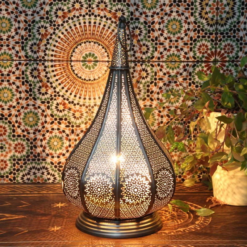 Ta orientalna lampa podłogowa przeznaczona jest zarówno do oświetlenia elektrycznego, jak i świecowego. Otrzymujesz dwie podstawki: jedną z kablem, przełącznikiem toggle i gniazdem E14 oraz jedną podstawkę, w której możesz umieścić świeczkę. Orientalna lampa stołowa Monza ma zatem wszechstronne zastosowanie, np. jako orientalna lampka nocna w sypialni, jako latarnia do strefy chronionej przed warunkami atmosferycznymi, np. na balkonie i tarasie, jako orientalna dekoracja do salonu i jadalni.