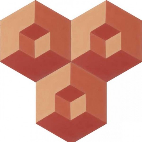 Niesamowity i gorący OP-ART! Zaskakująca, przestrzenna iluzja, którą uzyskasz dzięki płytkom cementowym heksagonalnym 6362. Kolory płytki: czerwony bordo (M59), pomarańczowy brąz (M55), jasny pomarańcz (E53). Opakowanie: 12 szt (0,41 m2). Format płytki: sześciokąt 200x230x16 mm, bok 115 mm.