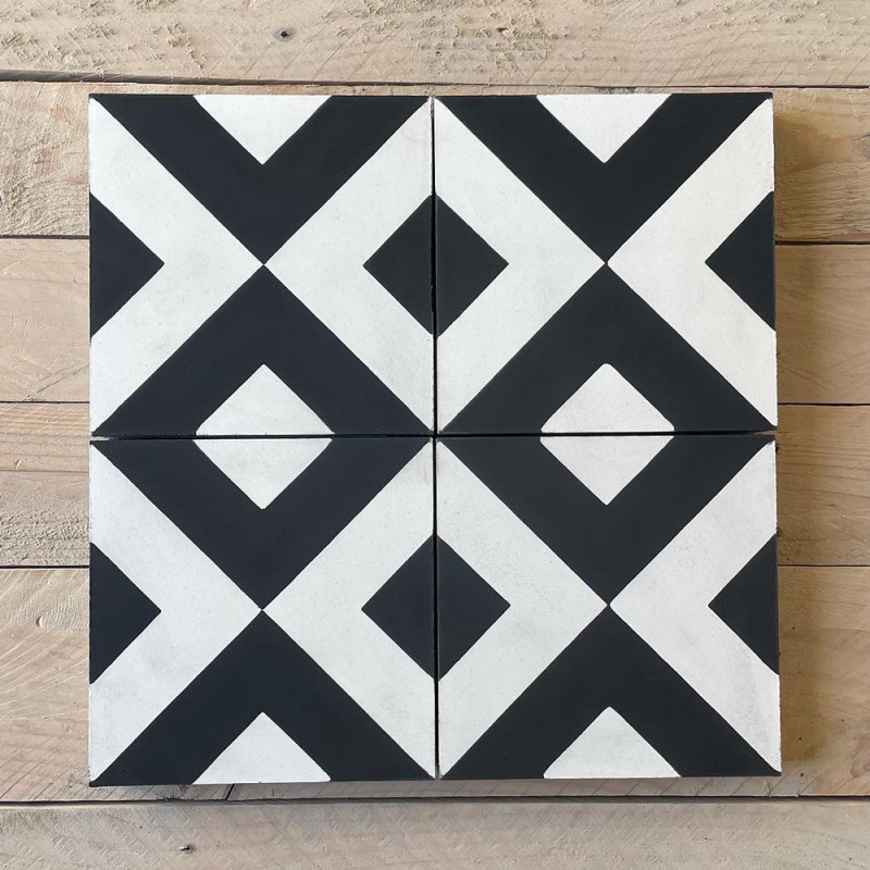Kafle z motywem czarno-białego kwadratu. Płytki cementowe 2110 świetnie pasują do współczesnych wnętrz. Kolory płytki: biały (M01), czarny (M07). Opakowanie: 12 szt (0,48 m2). Format płytki 200x200x16 mm.