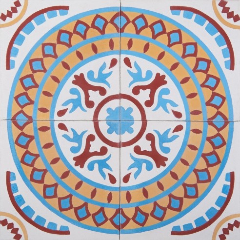 Kolory Maroka i magia geometrii. Płytki cementowe 402 są prawdziwym unikatem! Dzięki nim uzyskasz efekt pięknej mozaiki. Kolory płytki: biały (M01), żółty (M16), niebieski (M33), czerwony (M59). Opakowanie: 12 szt (0,48 m2). Format płytki 200x200x16 mm.