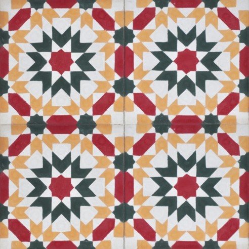 Mozaika marokańska. Płytki cementowe 404 to wzór, który idealnie oddaje bogactwo tradycyjnej arabskiej mozaiki. Twoja podłoga i ściana będą piękne! Kolory płytki: biały (M01), żółty (M16), zielony (M29), czerwony (M59). Opakowanie: 12 szt (0,48 m2). Format płytki 200x200x16 mm.