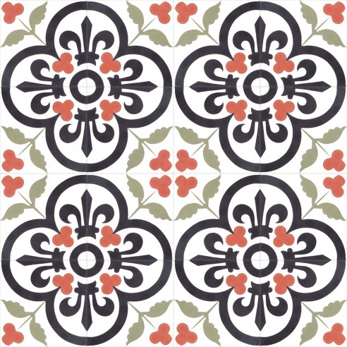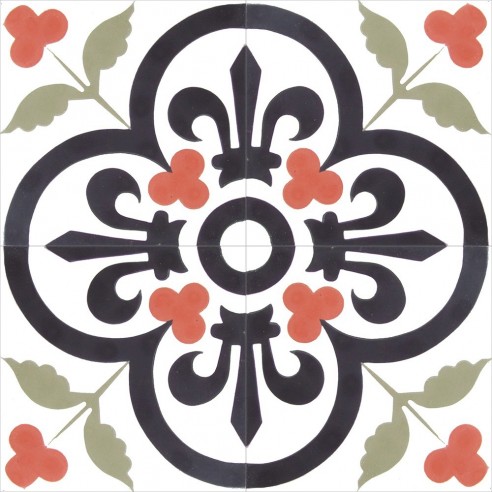 Orientalny i roślinny motyw płytki cementowej 4180 będzie na pewno pasował do wnętrz rustykalnych. Sprawdź to i zamów teraz! Nie czekaj! Kolory płytki: biały (M01), pomarańczowobrązowy (M55), oliwkowy (E02), szary (E07). Opakowanie: 12 szt (0,48 m2). Format płytki 200x200x16 mm.