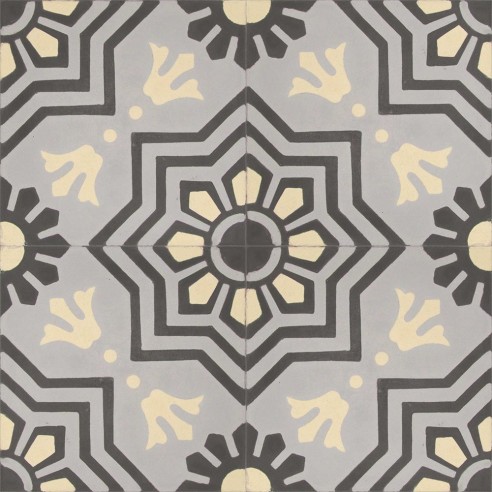 Piękny marokański wzór w pastelowo-szarej tonacji. Sprawdź go koniecznie! Płytki cementowe 5303 to bardzo wysoka jakość i sprawna logistyka! Kolory płytki: kremowy (M65), szary (M03), grafit (E07). Opakowanie: 12 szt (0,48 m2). Format płytki 200x200x16 mm.